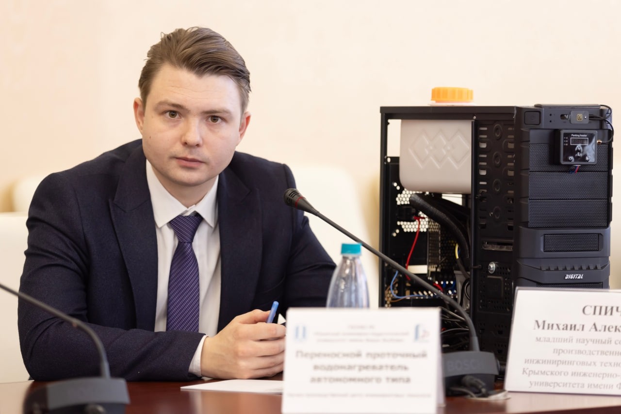 Михаил Спичка выступил с докладом на тему «Научно-производственный центр как драйвер технологической кооперации: практика взаимодействия с промышленностью», в рамках которого были представлены проекты «Переносной проточный водонагреватель автономного типа» и «Многофункциональная самоходная платформа с роботизированным комплексом». Правительство Республики Крым выразило готовность оказывать содействие в продвижении научных разработок и их практической реализации.